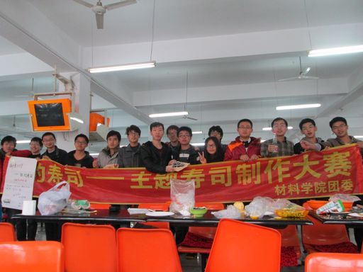 11级11109101班在学士楼二楼举办了“你的寿司,大型寿司制作活动”,院团委和院学生会的同学均参加了此次活动,活动现场火爆,在场同学跃跃欲试,在活动现场充满了寒冬中的温暖。