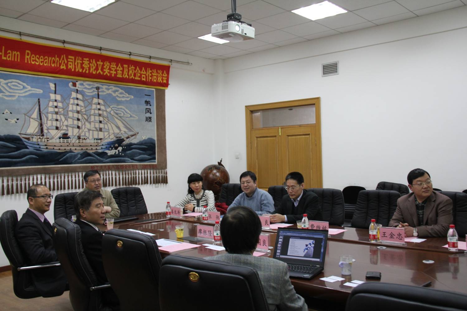 629会议室举行。校研究生院常务副院长甄良教授代表学校对Lam Research公司亚太区总裁廖振隆先生及中国区人力资源部鲍国良部长一行到访表示欢迎,并对公司在学校设立论文奖学金表示感谢,同时表示双方要进一步拓展合作领域,推动双方合作关系不断深化发展。廖振隆介绍了公司基本情况以及在全球业务发展的状况。博彩app下载