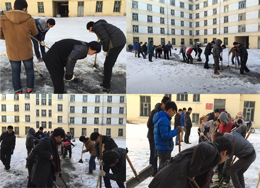 1329102班团支部开展了以“学习雷锋,除冰开路,方便出行”为主题的活动。