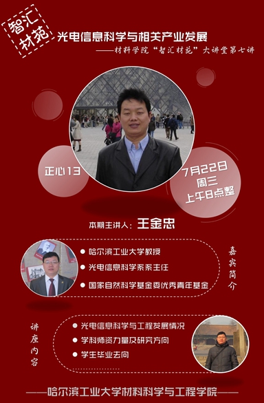 嘉宾简介:王金忠,光电信息科学系教授、博生生导师、系主任。2009年从欧洲回国,作为哈工大百人计划引进人才加入赵连城院士团队,2010年被评为教育部新世纪优秀人才。主要研究方向包括宽带隙半导体光电材料与器件、高效太阳能电池材料与器件、特种光纤材料与器件。承担包括科技部863、科技支撑等国家和省部级项目多项,在国内外学术会议和国际重要学术期刊上发表论文80余篇,其中SCI论文54篇。