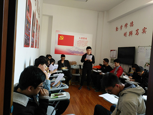 在本次活动开展前,各小组成员认真学习了经典原著及习近平总书记在两会闭幕式上的讲话。在活动中,各小组成员依次讲述了自己对习近平总书记在两会闭幕式上的讲话和党的理论知识的心得体会,并分享自己的入党动机。对于原著和习近平总书记在两会闭幕式上讲话的学习,宋和谦讲述了自己对于“人民是历史的创造者,人民是真正的英雄”的感想,范丽英讲述了对于“把蓝图变为现实,是一场新的长征”的体会。谈到哈工大人应该怎样担负起身上的责任这一话题,梁泽宇同学认为“作为哈工大人,在八百壮士精神的鼓舞之下,我们更应当牢记使命,谨记哈工大精神,为祖国和人民奉献一生”。对于“我为什么要入党”,孙凯同学谈到:“中国共产党是优秀的政党,而想加入中国共产党是因为我要将共产主义作为自己的信仰,为国决胜献力。”栾鹏同学说:“为了承担更多的社会责任,努力向党组织靠拢,全心全意为人民服务。”在大家交流结束后,三位老师针对同学们的发言,进行了点评,其中段彬彬老师谈到自己当时为什么入党时,结合马祖光院士的事迹,给同学们讲述了党员如何履行义务职责,更好地为人民服务。常涛老师认为发展对象也要以党员的标准来要求自己,铭记责任,服务群众。李华源老师讲到,发展对象同学们要进一步坚定政治理想,在日常的学习生活中发挥模范带头作用,争取早日加入党组织。
