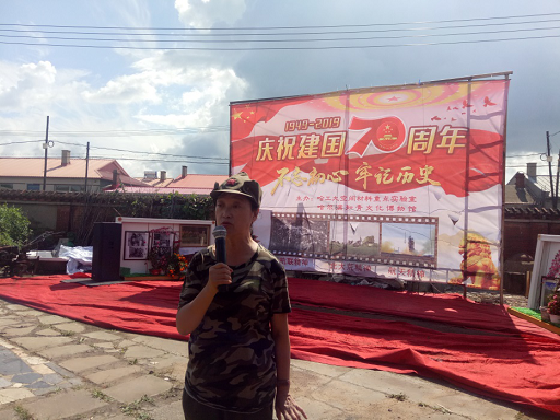 上午十点,在庄严的国歌声中 “不忘初心,牢记使命”迎国庆露天主题活动在知青博物馆前菜园内正式开始,馆长王怀信介绍了参加活动的人员,黑龙江省中华文化促进会秘书长王广贺首先发言,抗联烈士后代李景梅女士给大家讲述了东北抗联的历史,空间材料重点实验室党支部书记刘海讲话并代表实验室向博物馆授予了《实验室历史文化教育基地》牌匾,最后参加活动人员共同进行了联谊活动。