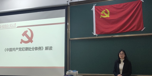 11月4日晚18:30分,材料-能源-人文-外国语-数学博彩app下载 入党积极分子培训班第五讲在正心11进行。博彩app下载 党委副书记张弛老师给大家进行了《中国共产党纪律处分条例》(下文简写为《条例》)的解读。