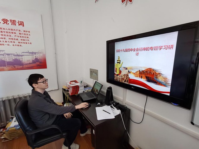 刘雁超同学首先向大家介绍了“不忘初心、牢记使命”主题教育是在全党范围内开展的主题教育,是推动全党更加自觉地为实现新时代党的历史使命不懈奋斗的重要内容。此次主题活动旨在提升党员干部强担当,有作为的精神,提高为人民服务的意识,焕发为国家事业努力拼搏奋斗的精神。高一嵩同学为大家简要阐述了党的十九届四中全会精神。党的十九届四中全会,是在新中国成立70周年之际“两个一百年”奋斗目标历史交汇点上,召开的一次具有开创性、里程碑意义的重要会议。全会通过的《决定》,是坚持和完善我国国家制度和治理体系的纲领性文献,为新时代坚持和完善中国特色社会主义制度、推进国家治理体系和治理能力现代化指明了前进方向、提供了根本遵循。
