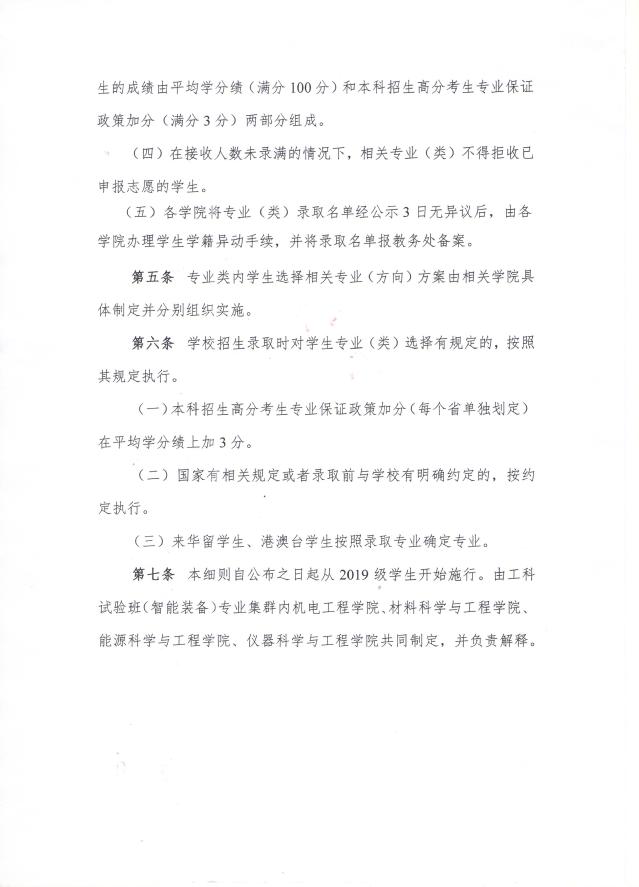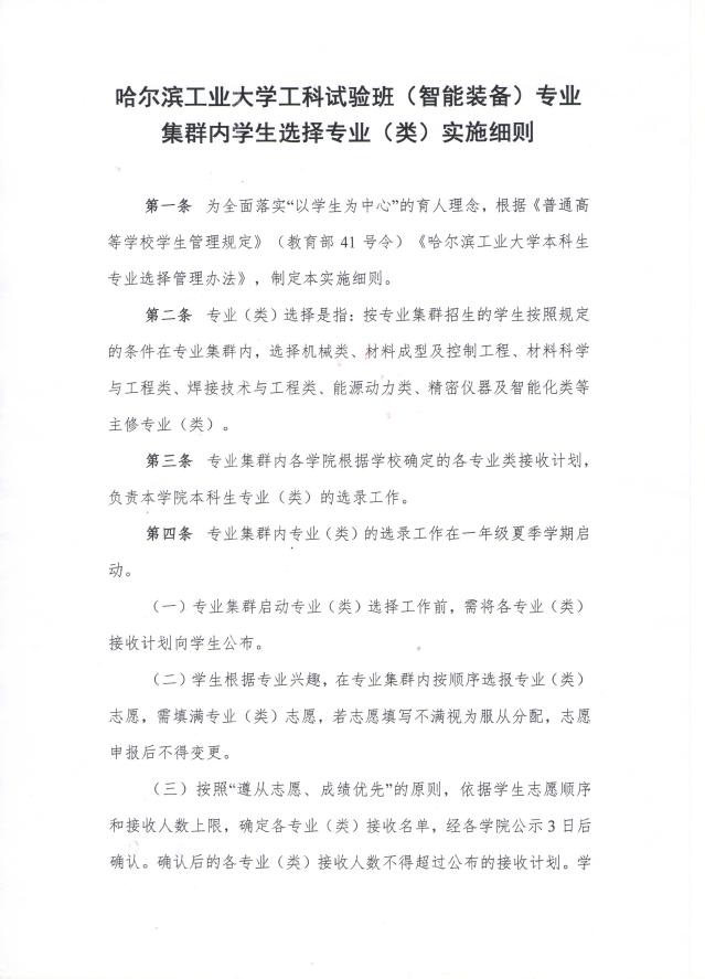 哈尔滨工业大学工科试验班(智能装备)专业集群内学生选择专业(类)实施细则