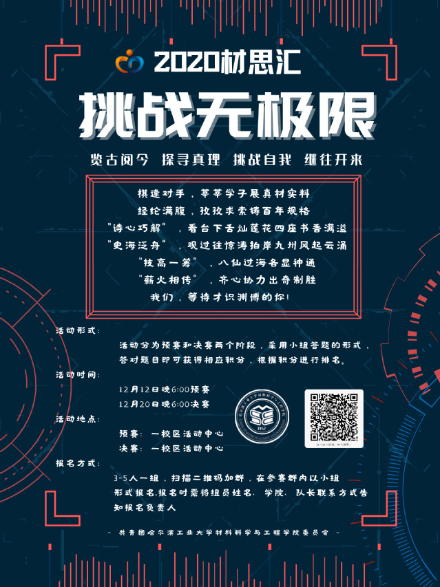 哈尔滨工业大学材思汇“挑战无极限”知识竞赛报名通知