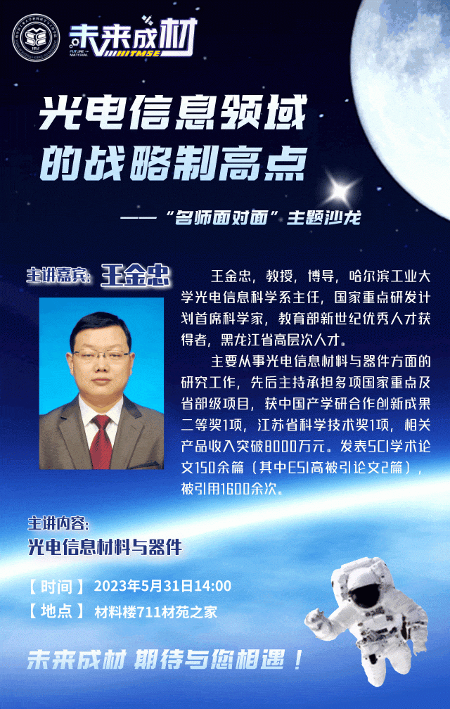 你是否想领略材料之美,感悟材料之蕴?你是否想探索先进材料,助力航天强国?你是否想走进材料前沿,勇攀科学高峰?博彩app下载 特面向未来技术博彩app下载 学生推出“未来成材”主题沙龙活动,邀请名师学长与你面对面畅谈,一同走进材料的奇妙世界。