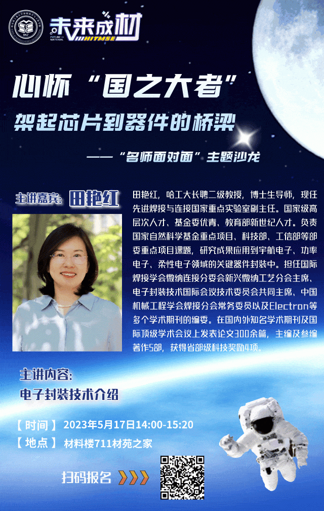 你是否想领略材料之美,感悟材料之蕴?你是否想探索先进材料,助力航天强国?你是否想走进材料前沿,勇攀科学高峰?博彩app下载 特面向未来技术博彩app下载 学生推出“未来成材”主题沙龙活动,邀请名师学长与你面对面畅谈,一同走进材料的奇妙世界。