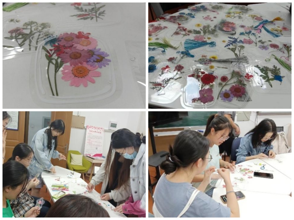 “心花怒放”活动在材料楼324举办,同学们利用PET透明书签和准备好的干花,搭配不同的组合,完成了一件件美丽的艺术品,展示出独特的创意和想法。干花定格了花朵最美丽的瞬间,同学们也定格了青春的记忆。