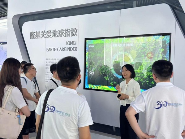 7月11日上午,实践团师生来到了隆基绿能科技股份有限公司。隆基绿能是全球市值第一的光伏企业,致力于成为全球最具价值的太阳能科技公司。实践团师生通过展厅了解到在“双碳”目标背景下,材料与新能源领域近年来快速发展的情况及重大成果。随后,隆基绿能品牌规划负责人李濛,招聘专家刘天博等人就单位基本情况、发展前景、福利待遇等方面与实践团师生进行了深入交流,让同学们了解到以技术创新引领低碳发展新格局的重要性。