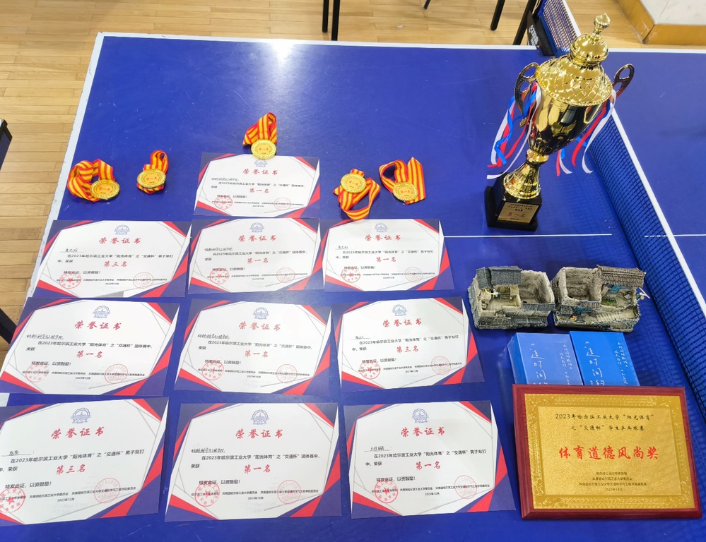2023年12月9日至10日,由体育部主办、交通博彩app下载 承办、后勤集团协办的2023年哈工大“交通杯”学生乒乓球赛于二校区文体中心成功举办。博彩app下载 代表队在比赛中奋力拼搏,展现出良好的精神风貌,最终斩获男子双打第一名及第三名、男子单打第三名和混合团体第一名的骄人成绩,并获得体育道德风尚奖。