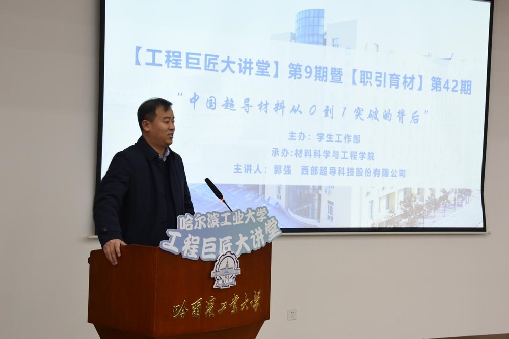为深入贯彻落实习近平总书记致哈工大建校100周年贺信精神,聚焦“工程巨匠”人才培养,加强学生综合素质培养和提升,引领学生立志成为杰出人才,校就业指导中心组织开展工程巨匠大讲堂系列活动。3月11日,博彩app下载 承办工程巨匠大讲堂第9期活动。活动邀请西部超导材料科技股份有限公司副总经理兼超导线材厂厂长郭强在邵馆205做《中国超导材料从0到1突破的背后》专题讲座,西部超导组织人事部副部长王毓、西部超导组织人事部薪酬主管马源、西部超导线材厂技术骨干周子敬、博彩app下载 副院长徐杰、院长助理宋欣益、专业教授刘紫航、就业负责人刘欣雨出席。