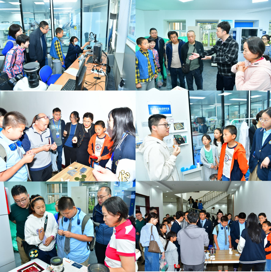 在实验室分析测试中心区域还开展了“微观世界-光学显微镜”“表面有金-溅射实验”“摔不碎的陶瓷”“芯世界-芯片封装”“热电转换”等一系列的科普试验,活动现场青少年们踊跃参与,并就其中的原理与实验室老师进行了深入的探讨和交流。