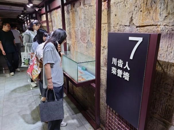 7月16日,实践团成员来到成都市双流区莲花社区川齿记忆馆,追寻川齿记忆、传承奉献精神。川齿记忆馆是由三线建设时期四川齿轮厂防空洞改造而成。充满着时代气息的事物将实践团成员带回了“好人好马上三线”的光荣年代。参观过程中,实践团成员还遇到了附近居住的80岁高龄的川齿厂老工人,听她讲述了自己60年前响应国家号召、从哈尔滨来到四川定居奋斗的经历,她勉励同学们生逢好时代,正值青春年华,一定要努力学习专业本领,用自己所学为国家作贡献。实践团成员深受触动,深切感受到了“自力更生、艰苦奋斗、无私奉献、开拓进取”的川齿精神。