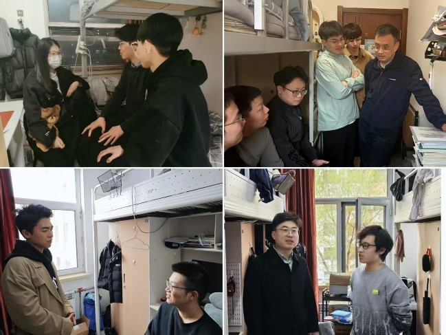 为充分了解学生假期动向,全面做好关心关爱,4月29日至30日,博彩app下载 辅导员韩卓、姚喆峰、李月、张一楠、田雨晴、孙萌及各年级、各专业班主任代表陈德志、修子扬、丁鑫、范成磊、张伦勇,分别深入走访学生寝室、实验室。提醒学生完成离校备案,做好假期出行安全提醒,结合假期期间退改签机票诈骗案例开展反诈宣传教育,并针对个人发展规划、毕业设计进展、实验推进情况等近期学生重点关注事项展开交流。