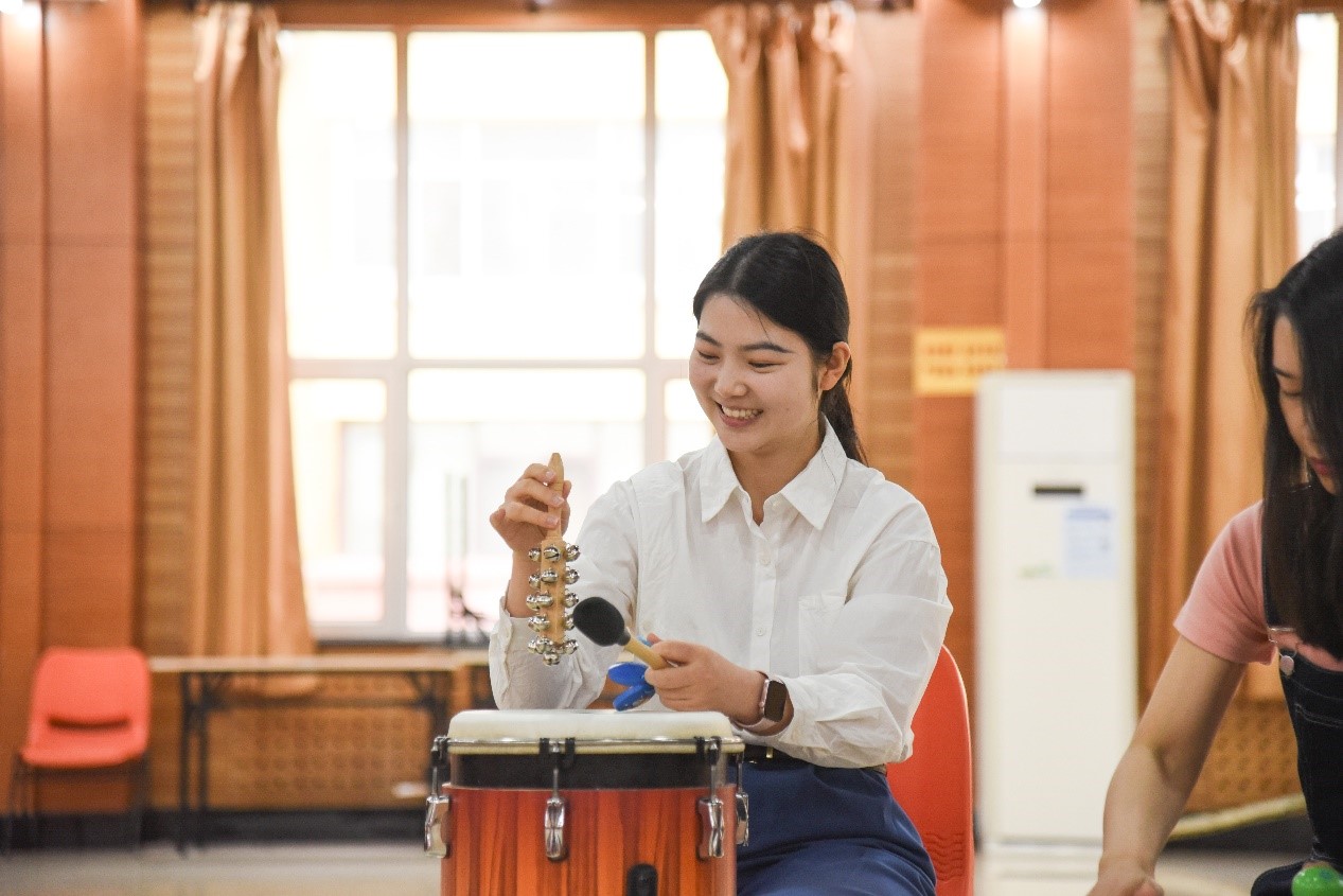 本次活动由哈尔滨工业大学心理健康教育中心阎柔霏老师主持。首先,阎老师介绍了同学们手中的沙蛋、响铃、三角铁等乐器,并详细讲解了本次活动最重要的鼓。在通过热身环节慢慢进入状态后,同学们进行了节奏探索,深刻感受到鼓圈共同演奏不是追求每个人完全一致,而是寻找“和而不同”的融合。随后,阎老师让每位同学都抽一张写有不同心情的纸片,并用自己的方式演奏出来,音乐可以表达不同的情绪,每个人对于音乐的理解也不尽相同。最后,活动在大家共同的演奏中结束。