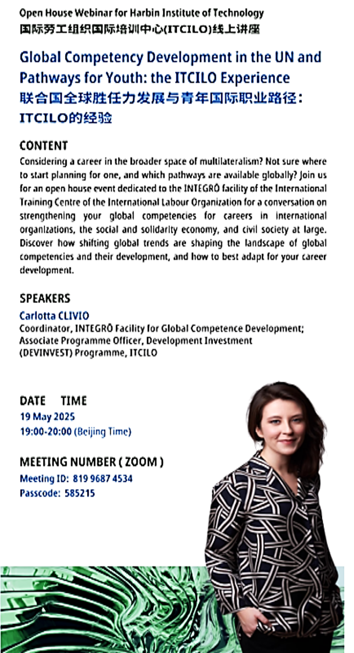 【职引育材】第62期|国际劳工组织国际培训中心(ITCILO)专家做客哈工大——分享联合国全球胜任力发展与青年职业路径