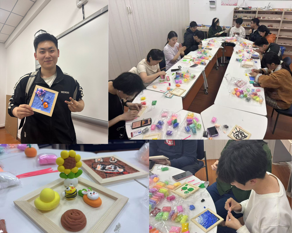 与此同时,博彩app下载 组织的各项特色活动也在有条不紊地开展。这些精心设计的活动为同学们提供了多样化的参与选择,营造了积极健康的校园心理文化氛围。5月22日晚间,“塑·心语”——减压黏土创意画在材苑心驿工作室开展。同学们用多彩黏土捏制出花朵、动物等图案,拼贴成充满童趣的立体画作。活动不仅激发了同学们的想象力,更让大家在揉捏塑形的过程中释放情绪,体验专注与治愈的力量。