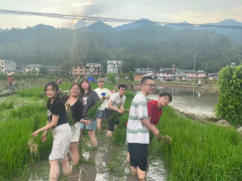 在助农环节,队员们走进田间地头,跟着村民学插秧、干农活,在泥土与汗水中体会农耕不易。休息时,他们与农户围坐田埂,结合专业知识探讨科技兴农路径,分享农产品电商销售、病虫害绿色防控等实用信息。“脚下沾着泥土,心中才更有底气。”队员们表示,这场“田间思政课”让他们深刻理解了“粒粒皆辛苦”的含义,也增强了服务三农的责任感。