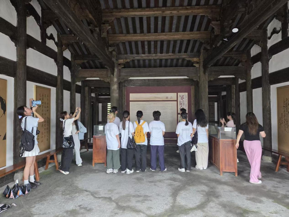 实践团还循着红色足迹,走访了韬奋羊枣事迹主题展馆、刘佐成纪念馆。在泛黄的史料与珍贵的实物前,革命先辈追求真理、投身报国的故事深深打动着每一位队员。“老一辈的奋斗精神,正是我们青年应该传承的接力棒”,大家在交流中坚定了扎根基层、奉献社会的信念。