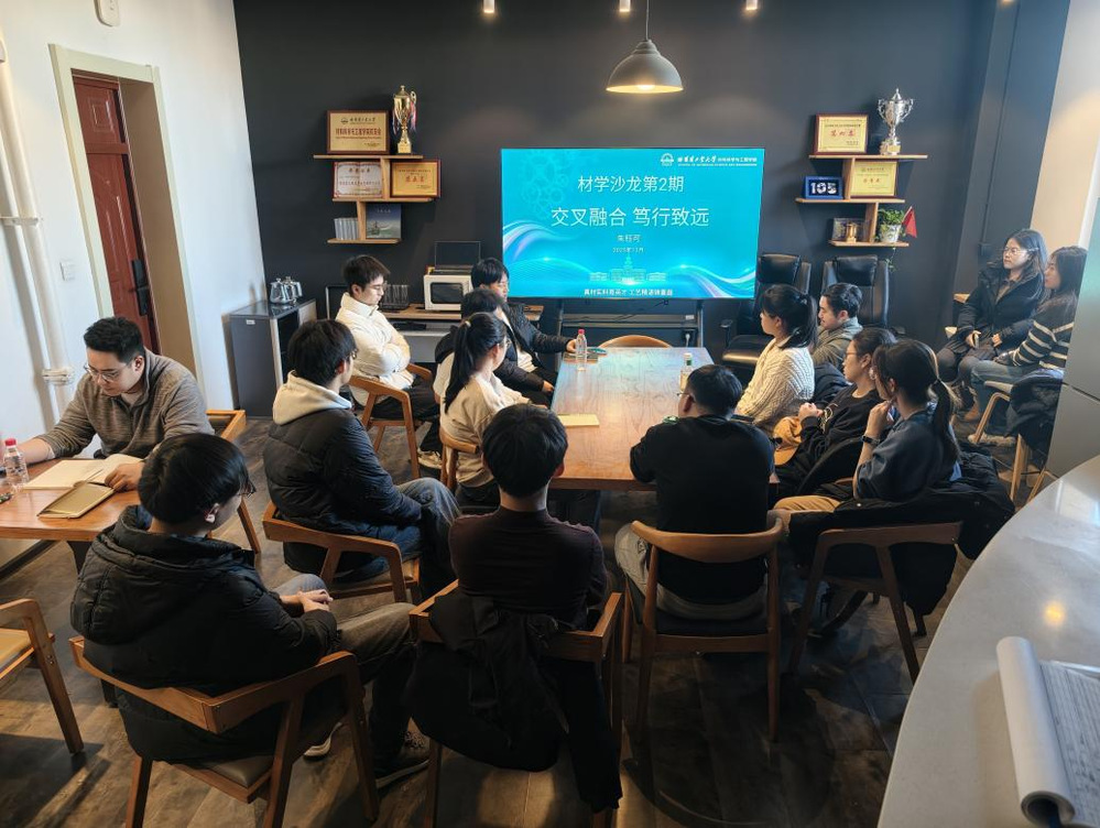 2025年12月29日中午,博彩app下载 研究生会学术部在材料楼711会议室举办了第二期“材学沙龙”小型学术交流会。本期沙龙以“交叉融合,笃行致远”为主题,聚焦青年科研工作者的多维探索,特邀入选我校“春雁英才计划”留校师资,我院博士后、副研究员、硕士研究生导师朱钰可作为分享嘉宾。